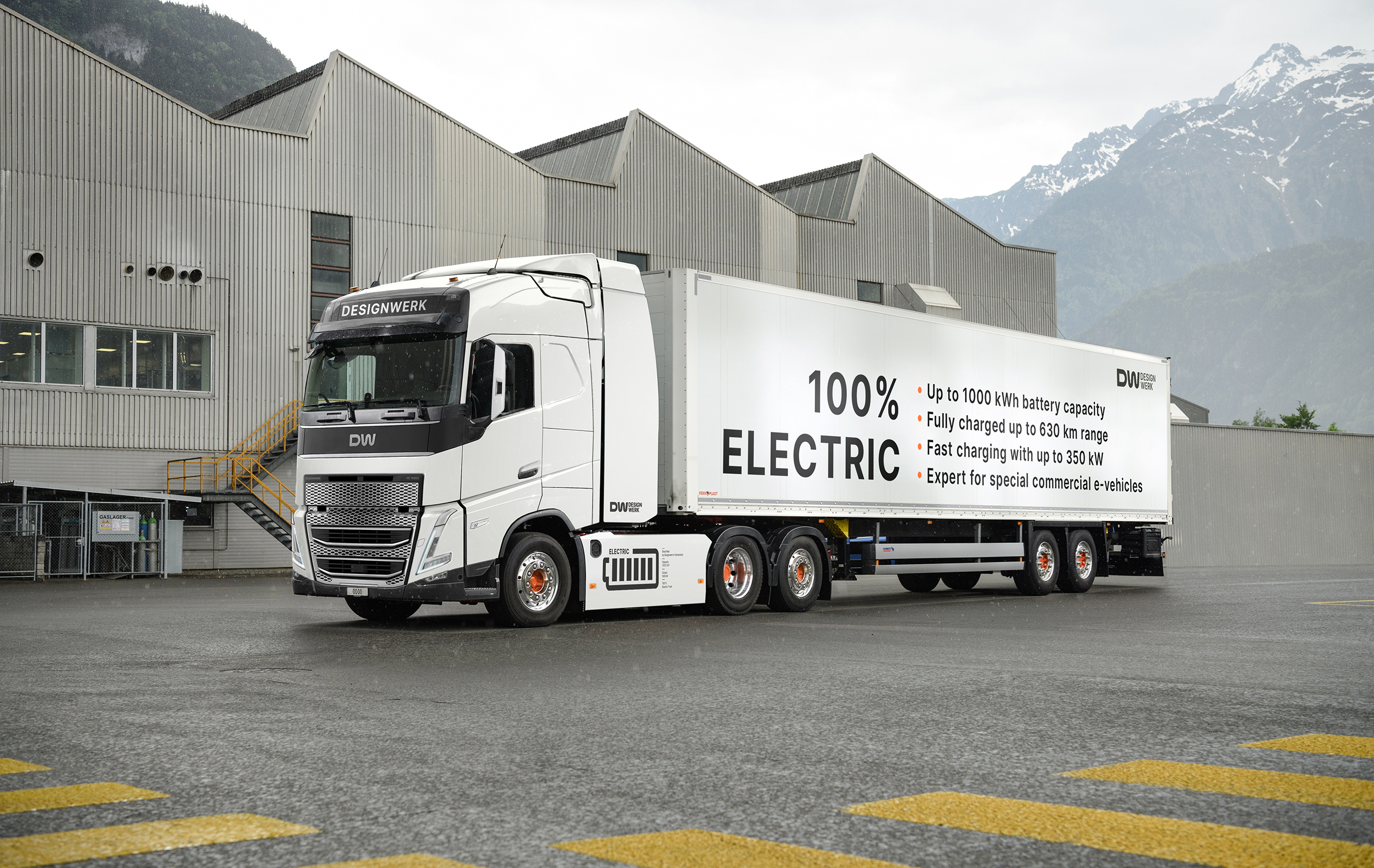 With the world’s first electric tractor unit with a battery capacity of 1,000 kilowatt hours, Swiss electromobility specialist Designwerk is bringing innovation for long-distance transport to the road. Depending on the region and route, you can drive with up to 50 tons total train weight.