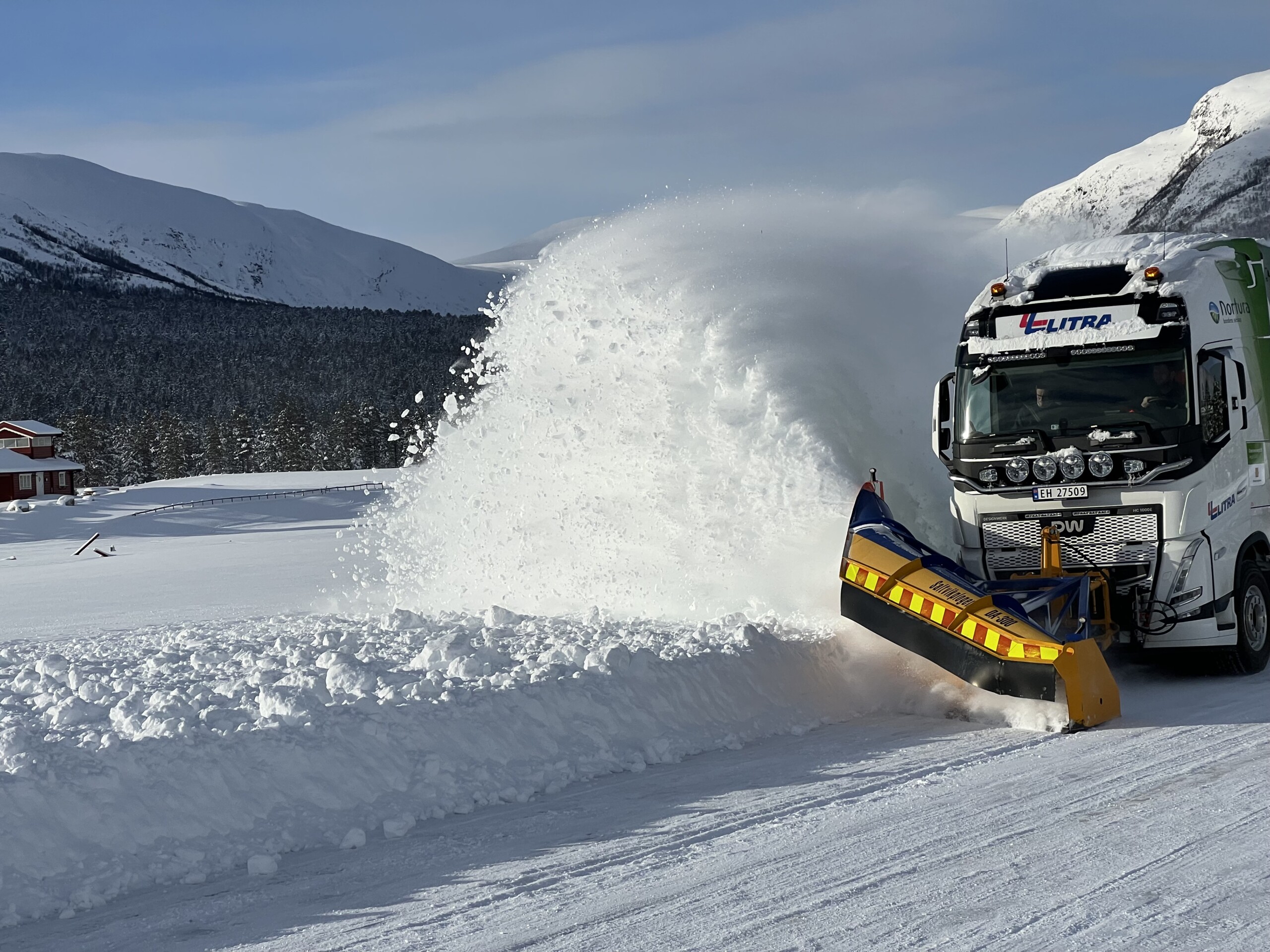 18.04.2024 – A few weeks ago, the Norwegian Road Administration Statens vegvesen completed a series of tests with an electric Designwerk Technologies tractor unit with snow plow. The 1000 kilowatt-hour (kWh) electric truck from customer Litra AS was tested for almost four weeks under challenging conditions for use in winter road maintenance. The aim of the test operations was to find out whether snow clearing with electric trucks is possible and sensible using today’s technology and under extremely adverse weather conditions. The test results will influence the tender conditions for winter road services in Norway. As a partner of Designwerk, CHSnor AS provided organizational support for the test series.