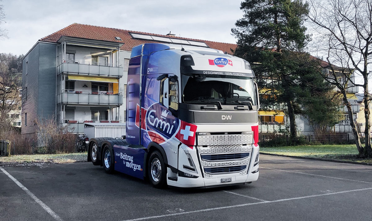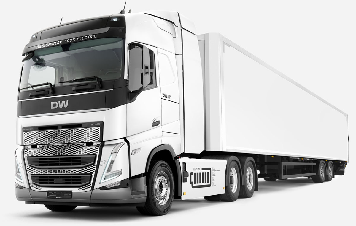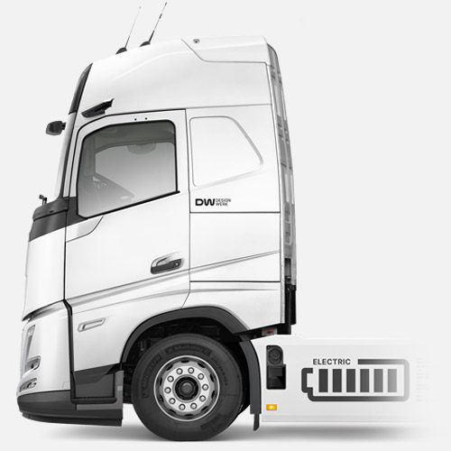 Avec le Designwerk HIGH CAB de Designwerk, basé sur la série Volvo FH, nous proposons une solution adaptée à tous ceux qui parcourent de longues distances dans leur quotidien. Il est ainsi possible de parcourir jusqu’à 730 kilomètres sans recharge intermédiaire. Un aérodynamisme optimal, une large visibilité ainsi que des cabines confortables garantissent l’expérience de conduite.