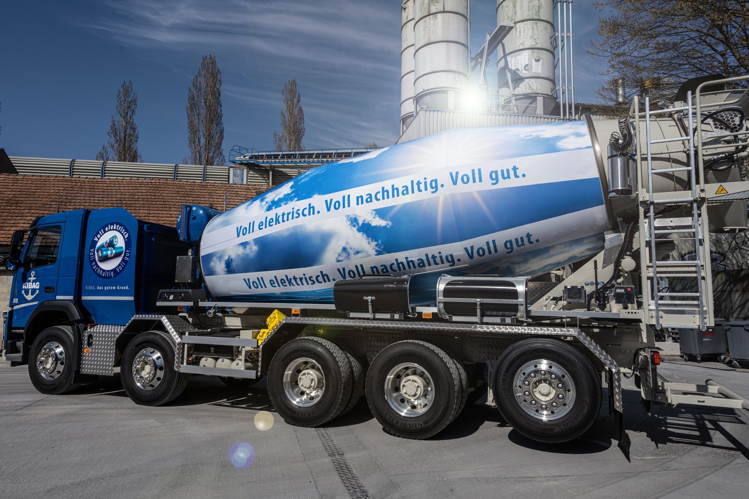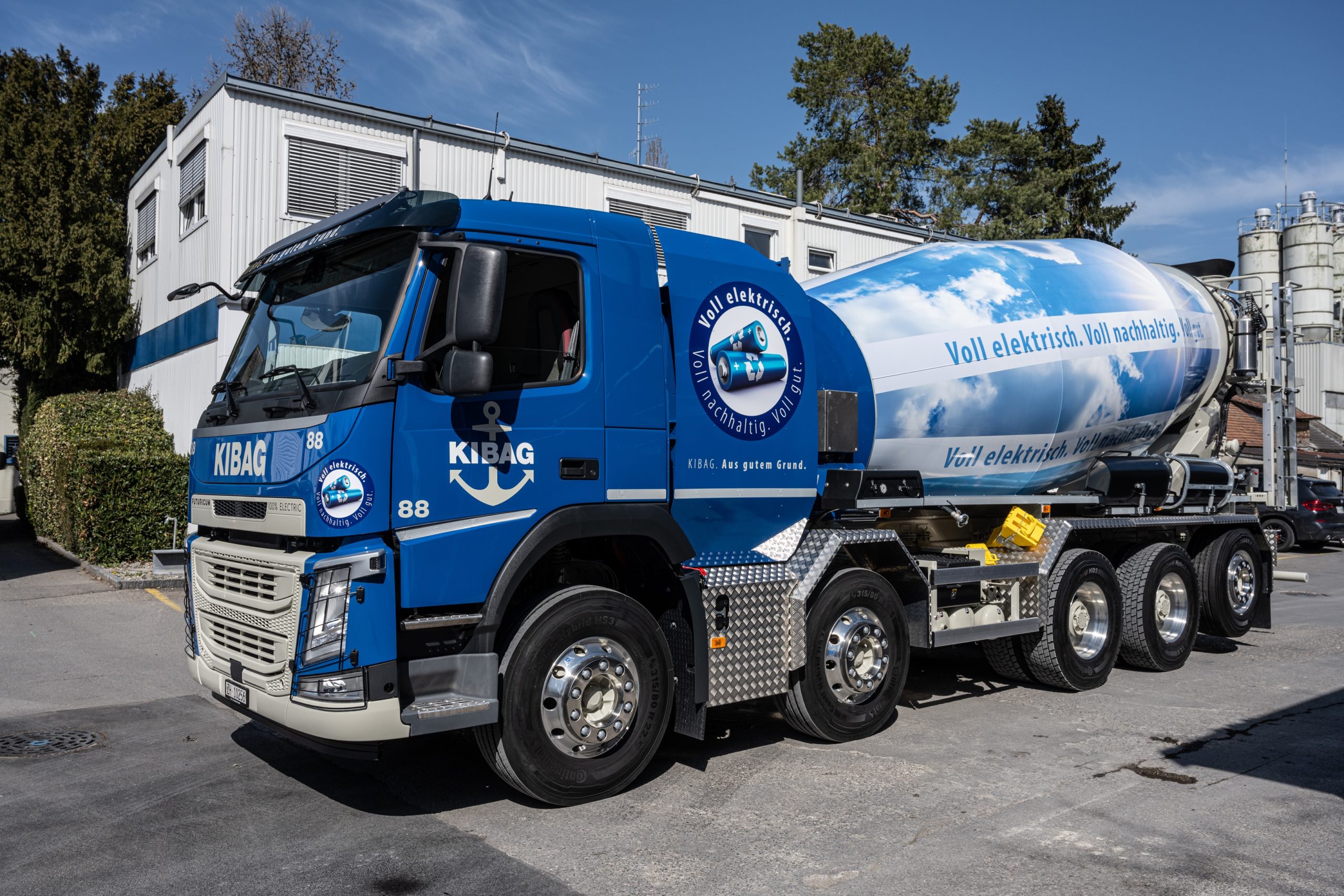 Futuricum E-Fahrmischer für nachhaltigen Betontransport Futuricum E-Fahrmischer für nachhaltigen Betontransport31. März 2021 – Mit der Inbetriebnahme ihres ersten vollelektrischen Fahrmischers für emissionsfreien und leisen Betontransport macht KIBAG einen weiteren innovativen Schritt Richtung Elektromobilität und Nachhaltigkeit. Dank dem klimafreundlichen Fahrzeug können jährlich rund 30 Tonnen CO2 eingespart werden. Das Fahrzeug stammt aus der Produktion des Schweizer E-LKW Spezialisten Futuricum einer Marke der Designwerk Group. Bei der Herstellung von Beton werden laufend Anstrengungen zur Verbesserung der Klimabilanz und Reduktion des CO2 Ausstosses unternommen. Für den Transport des Betons zur Baustelle sind bis anhin leistungsstarke Dieselmotoren im Einsatz, welche Abgase, CO2 und Lärm verursachen. Mit dem neuen E-Fahrmischer der Winterthurer E-LKW Marke Futuricum macht KIBAG einen wichtigen Schritt in Richtung nachhaltige Bauwirtschaft. Der vollelektrische E-Fahrmischer transportiert Betonmengen künftig leise und ohne lokalen Schadstoffemissionen zur Baustelle. Da die Wege zwischen den Betonwerken und Baustellen meist kurz sind, eignet sich die vollelektrische Lösung hierfür besonders gut. Zudem kehrt das Fahrzeug immer wieder ins Betonwerk zurück, wo eine Lade-Infrastruktur für die Batterien vorhanden ist. Dank der grossen Batteriekapazität reicht das nächtliche Aufladen der Batterien problemlos für den täglichen Betrieb. Vollelektrischer E-Fahrmischer von Futuricum Der E-Fahrmischer mit 5-Achs-Fahrgestell verfügt – passend zum elektrischen Mischtrommel-Aufbau – über ein vollelektrisches, leistungsstarkes Fahrgestell von Futuricum, der Marke für elektrische Nutzfahrzeuge der Winterthurer Unternehmung Designwerk Products AG. Das 40-Tonnen-Chassis des KIBAG E-Fahrmischers verfügt über vier Motoren, eine Gesamtleistung von 680 PS und eine Reichweite von bis zu 380 Kilometern. Die Reichweite inklusive acht Stunden Trommelbetrieb beträgt ungefähr 200 Kilometer. Enge Zusammenarbeit zwischen Liebherr und Futuricum Für die Realisierung und Herstellung des E-Fahrmischers arbeiteten die Ingenieure von Futuricum mit dem Baumaschinenhersteller Liebherr eng zusammen. Der von Liebherr und ZF entwickelte Trommelantrieb besteht aus einer wartungsarmen, effizienten Einheit aus Elektromotor und Mischer-Getriebe. Dabei werden sowohl der LKW als auch der Fahrmischer-Aufbau gemeinsam von der Traktionsbatterie gespeist. Zusätzlich wird der Fahrer durch eine intelligente Maschinensteuerung unterstützt, indem jeweils nur die für den aktuellen Arbeitsgang tatsächlich benötigte Energie abgerufen wird. Mit der Inbetriebnahme des E-Fahrmischers unterstützt Futuricum die Entwicklung zu einer nachhaltigen Baulogistik. Medienkontakte: Designwerk Products AG, Miriam Bosshard, Telefon: +41 44 515 48 58 KIBAG Management AG, Christian Rusterholz, Telefon: +41 58 387 11 39 Bilder: KIBAG 2025-02-17T12:05:50+01:00